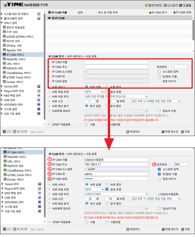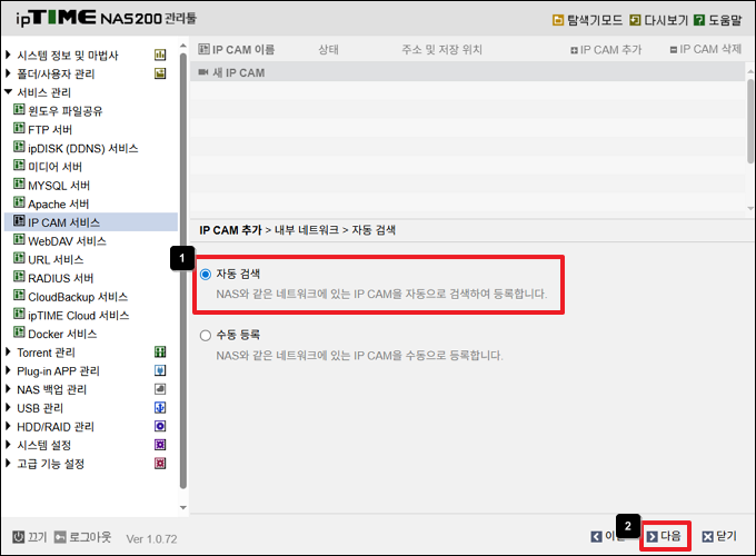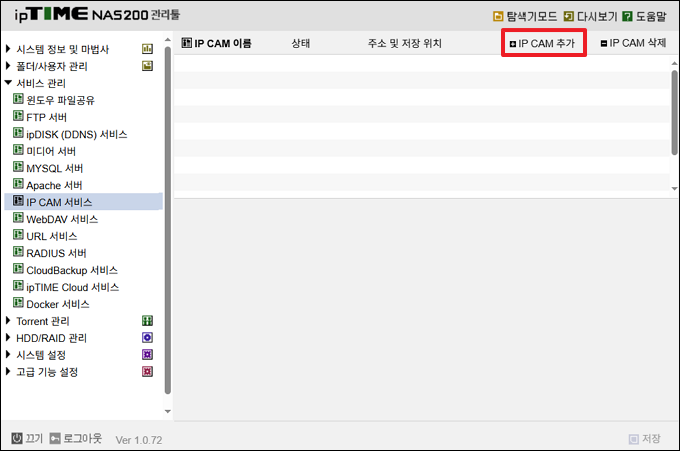 2. ipTIME NAS에 IP CAM 등록하기