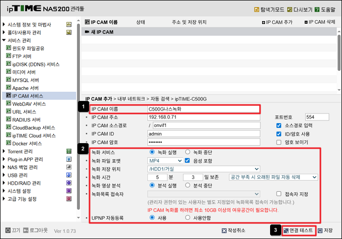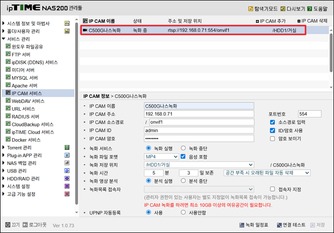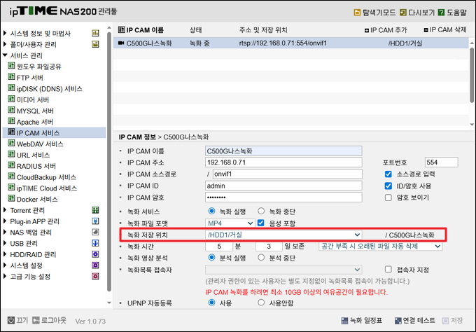 본 게시물은 C400G 또는 C500G의 영상을 ipTIME NAS에 저장하는 방법을 안내합니다.