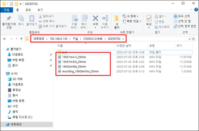 - 본 게시물에서는 C500G나스녹화로 설정하였습니다.