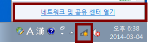 1) 우측 하단의 무선 네트워크 연결 아이콘을 클릭합니다.