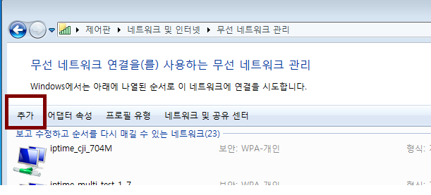 3) “무선 네트워크"에서 “추가" 버튼을 클릭합니다.